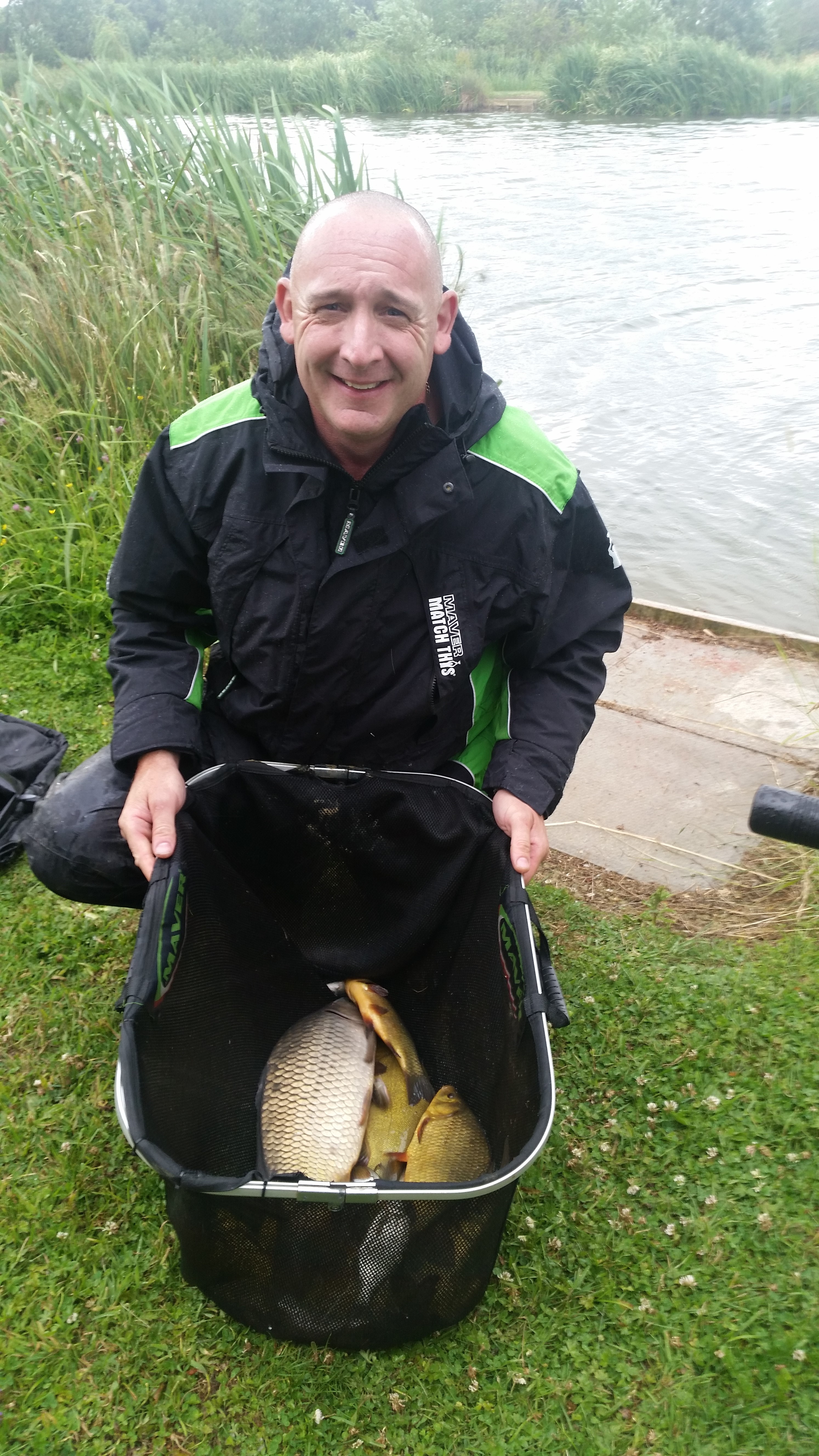 Tony Bailey was a comfortable winner on Peg 14. He caught carp and the odd skimmer steadily all day on pellet fished on the deck. Steve Pope fished tight to the corner with pellet. He had several big carp. Brian Hutchings in his own words had a nightmare. He lost 5 big carp possibly foul hooked, but recovered to take 3rd place. He caught down the edge and in open water on maggot and pellet. He had a good catch of carp and skimmers. |